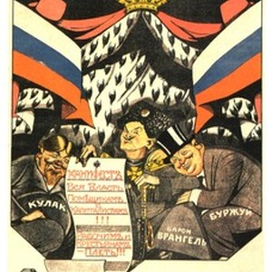 A poster from the RussianCivil War era. Captions read, "Manifest. Vsia vlast' pomeshchikam i kapitalistam!!! Rabochim i krest'ianam -- plet'!!! / Манифест. Вся власть помещикам и капиталистам!!! Рабочим и крестьянам -- плеть!!!", meaning, "Manifesto: all power to the landholders and capitalists!!! Lashing to workers and peasants!!!". [Description English/roman)]