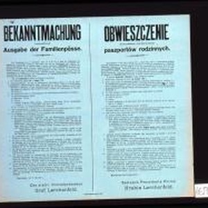 Image / Bekanntmachung betreffend Ausgabe der Familienpasse ... Obwieszczenie dotyczace wydawania paszportow rodzinnych ... …