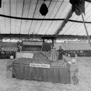 Photo--black and white, from Borba celluloid negative: Gravenstein Apple Show display by Spring Hill District illustrating the nursery rhyme "Jack and Jill." In the background is a San Francisco display and the Gravenstein Apple Growers Co-Operative exhibit.