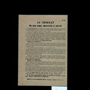 Za svobodu. Vo imia mira, bratstva i chesti! My khotim mira ... Vo imia chesti revoliutsionnago naroda, vo imia bratstva narodov, vo imia mira - vpered, na Vil'gel'ma Gogentsollerna!