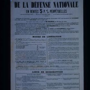 Republique francaise. Emprunt de la defense nationale en rentes 5 p. % perpetuelles. ... Modes de liberation: ... Lieux de souscription: