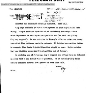 Image / Robert Murphy cable 3430 for Assistant Secretary Saltzman, eyes only, regarding negotiations …