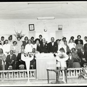 Photograph of "Sis. Barron, Mother Barron's baby sister Leona Gee, Gee's memorial" -- written on back. No date. [Description English/roman)]