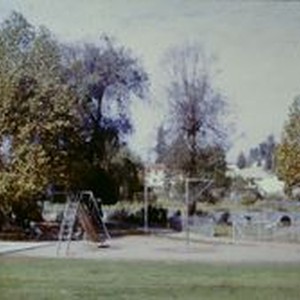 Slide, color transparency: Ives Park in Sebastopol 1965. Children's play area.