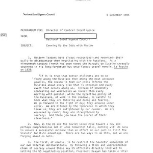 National Intelligence Council memo to director of central intelligence regarding evening up the odds with Moscow