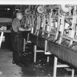Photo--black and white: Homer Gardener at Manzana Products in Graton.