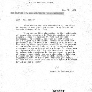 Robert G. Hooker Jr. note to Mr. Kohler regarding propaganda policy