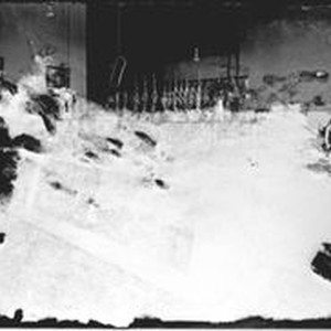 Negative glass-plate photo: From a glass plate negative made by William Borba. Most of print obscured as paper was stuck to the glass negative. Appears to be a butcher shop.