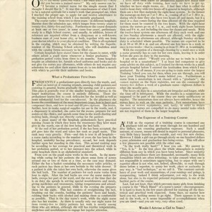 Describes the responsibilities, hours on duty, and expenses associated with training to be a nurse.