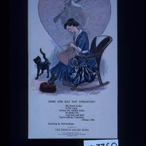 Some one has not forgotten. My heart today is far away across the rolling brine. So while I knit and knit you're still my Valentine. - George Ade. Published by The French Relief Fund. The Indianapolis Branch of the American Fund for French Wounded