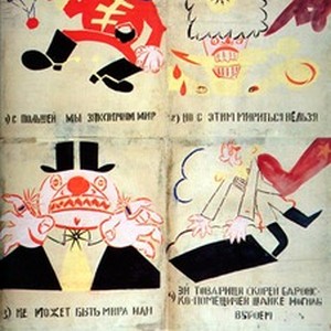 A poster issued during the Russian Civil War (1917 - 1923). Captions read, "1) S Pol'shei my zakliuchim mir 2) no s etim mirit'sia nel'zia 3) ne mozhet byt' mira ili 4) ei, tovarishchi, skorei baronsko-pomeshchichei shaike mogily vyroem / С Польшей мы заключим мир 2) но с этим мириться нельзя 3) не может быть мира или 4) эй, товарищи, скорей баронско-помещичей шайке могилы выроем", meaning, "We will signed a truce with Poland, but the rest of our enemies must be destroyed and buried". [Description English/roman)]