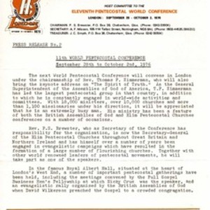 A set of circular letters about the Eleventh World Pentecostal Conference in London 1976 by The Pentecostal Churches of the British Isles. [Description English/roman)] Set okružnih pisama Pentekostalnih crkava Britanskih otoka o 11. svjetskoj pentekostalnoj konferenciji u Londonu 1976. [Description (original non-English/roman language/script)]