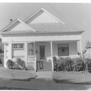 Photo, black and white: Sebastopol house at 7158 Calder Avenue a Queen Anne built in 1895 in the Calder Addition. House photographed in 1993 by Evelyn McClure for her book "Sebastopol, California : History, Homes and People."