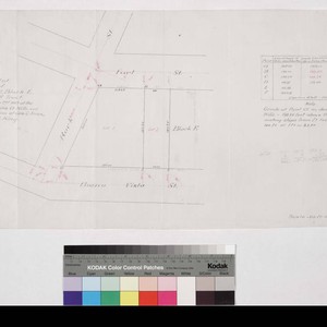 Rock St. between Fort and Buena Vista St.; color highlighting; table with elevation data. ; Drawn under the direction of Geo. C. Knox.. . Alt title supplied by cataloger.