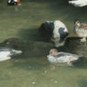 A gathering of male and female goldeneye and male harlequin ducks and male bufflehead ducks.