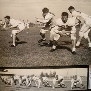 Photo--Black and white: Analy High School Tigers Football. Top photo: L-R: Norman Dean, Dorman Steele, Gary Nelson and Jerry Green. Photographed by John LeBaron, Press Democrat. Bottom photo--unidentified players. Photographed by Joe Price, Jr Press Democrat.