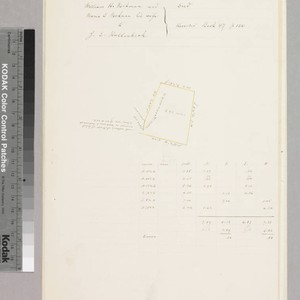 Showing courses, distances, with table of courses, title history, yellow outlining; first map on loose sheet, second is stapled to document, "Hollenbeck... Workman to Hollenbeck..." . Title supplied by cataloger.