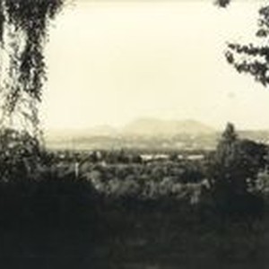 Postcard -black and white photo--view from Luther Burbank Experiment Farm in Sebastopol. Mt. St. Helena seen in background.