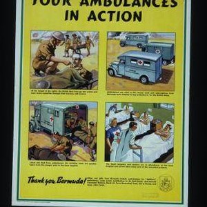 Your Ambulances in action ... Thank you, Bermuda. Other war gifts from Bermuda include contributions of "Spitfires," ambulances, scrap metal, contributions to Air Raid Relief, Anti-Aircraft Command Welfare, Royal Air Force Benevolent Fund, Aid to Russia, and many other funds