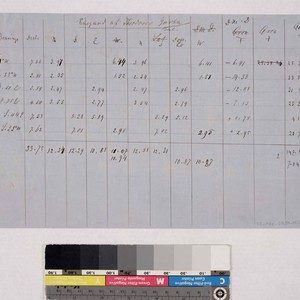 1 table ; 7 7/8 x 12 1/2 in., ink on blue paper [One side of four page item]