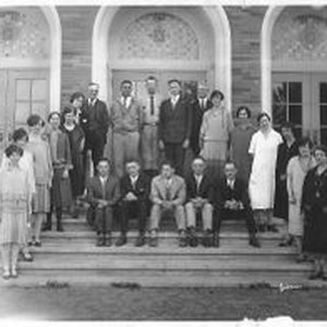 Photo--sepia, Photo of Analy Union High School staff in 1927 for the Azalea yearbook. Identified teachers are: standing L-R: 3rd from left: Laura Lorraine--French teacher, 4th from left: Edith Snipp--typing teacher, 5th from left Grace Davis, 7th from left Melrowe Martin, principal, 8th K.W. Shattuck--coach, 11th: Mr. Beach, history & political science, 14th: Irene Davis--cooking teacher--17th Mrs. Trizona--sewing. Seated: 2nd from left: Mr. Worwood--music. Photographed by Hartsook.