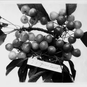 Photo--black and white: Cherry--Yellow Sweet I-7, branch with cluster (Early Light Colossal Sweet) 6-1929,