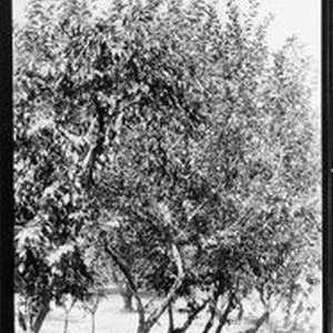 Photo, black and white: Trees at Burbank Experiment Gold Ridge Farm. Tree are unidentified. On back: "XX-10"
