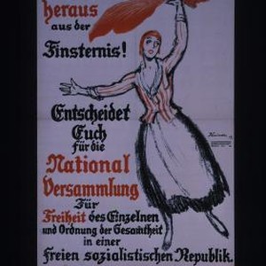 Madchen und Frauen, heraus aus dem Finsternis! Entscheidet Euch fur die National-Versammlung, fur Freiheit des Einzelnen und Ordnung der Gesamtheit in einer freien sozialistischen Republik