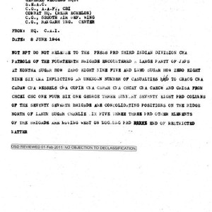 Image / Outgoing radio from HQ., C.A.I. to C.G., HQ., USAF CBI, Delhi and …