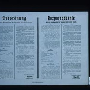 Verordnung betreffend Uberschreitung der Sperrlinie durch Zivilpersonen. ... Lodz, den 13. April 1916. Der Militargouverneur: Barth, Generalleutnant. Rozporzadzenie ... Gubernator wojenny: Barth, jeneral-porucznik