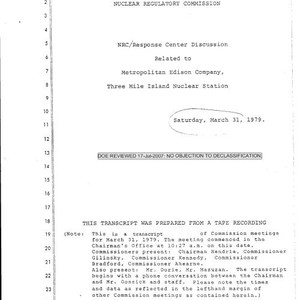 Image / NRC/Response Center discussion related to Metropolitan Edison Company, Three Mile Island Nuclear …