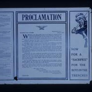 Proclamation. To whom it may concern: Whereas, it is now known that all of the ball and bat fund's first huge shipment of baseball paraphernalia for the U.S. troops in France went to the bottom of the sea when the American steamship "Kansan" was sunk by a German submarine and that all of the work it represented has to be done again; ... Now for a "sacrifice" for the boys in the trenches