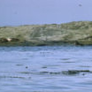 Bruce Mate swimming towards two seal bulls lying on Simpson Reef.