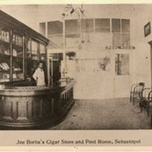 Photo--black and white: Joe Borba's Cigar Store and Pool Room, Sebastopol.