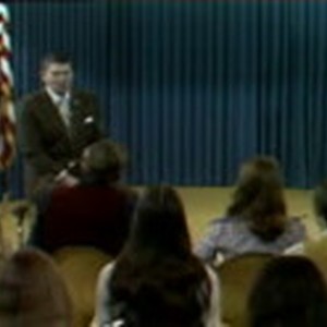 This program features a combination of seniors from two schools, Oak Grove High School in San Jose and Encina High School in Sacramento. Two videotapes represent two different programs taped at the same location on the same day, identified on the slate as programs 17A and 17B, taped January 7. Labels on the tapes are January 9 and January 16, 1974, which may be the broadcast dates. These were part of a televised series of question-and-answer sessions with high school students conducted by Ronald Reagan as governor of California, relating to California state political issues. The series was produced by JRH and Associates, Inc.Additional Descriptive Notes: Program 17A sequence: Visual of Reagan talking to students, but no sound (00:00), black (01:06), introductory slate (01:12), opening title sequence (01:42), Reagan begins speaking (02:03), first question, about Watergate (02:37), closing sequence (28:42). Program 17B sequence: introductory slate (01:17), opening title sequence (01:38), Reagan begins speaking (02:00), first question, about oil drilling around Santa Barbara and the environment (02:23), closing sequence (28:44). Two 2 inch quad tapes labeled as Parts 1 and 2 of Encina-Oak Grove.