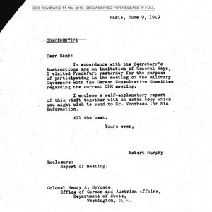 Robert Murphy letter to Henry A. Byroads, with attached report on meeting of the Military Governors with the German Consultative Committee