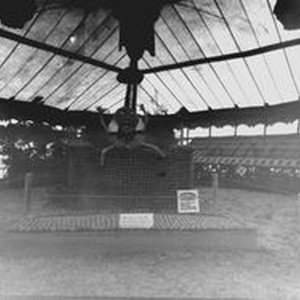 Photo--black and white, from Borba 8" x 10" celluloid negative: Gravenstein Apple Show display by the Sebastopol Chamber of Commerce of Humpty Dumpty on a wall made of apples. The sign also lists sponsors: Sebastopol Rotary, First National Bank, Sebastopol National Bank and The 20-30 Club (a service organization). about 1930s.