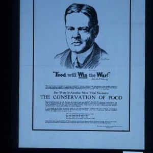 "Food will win the war!" Herbert Hoover. Ours is the most wonderful of countries, peopled by patriots, liberal, loyal and genuine, who readily respond to reasonable requests, appeals or suggestions of need, in all times of crisis. True American spirit has been distinctly shown in quick subscriptions to Liberty Bonds, contributions to Red Cross and Y.M.C.A. necessities. But there is another more vital necessity, the conservation of food