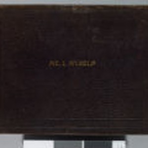 Album is bound in textured black material. Title "Me, I, Myself," is embossed on the cover in gold lettering. The number "18" is affixed on the top of spine with glue. Photographs are mostly studio portraits of Jack London at various ages, and miscellaneous photos of London at his ranch and in Korea. Cover of album is only slightly worn, Top 1/2" of spine is missing. The interior of album is very worn, pages have been removed, and most pages have come apart from the binding. Pages are quite worn also.