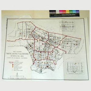 No old shelf mark. Part of an application to the State for funds. Verso marked Exhibit B. For Exhibit A, see RB ephMPCALIF0098. Submaps: Pasadena Central District; Long Beach Central District. Prime meridian: GM. Relief: no. Graphic Scale: Miles. Projection: Cylindrical. Printing Process: Lithography. Verso Text: District Serial Number 1101-5107 State Application No. 50180. Exhibit B.