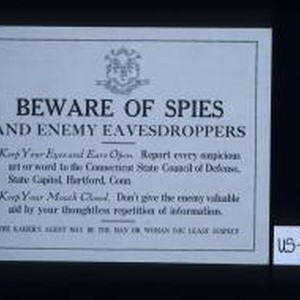 Beware of spies and enemy eavesdroppers. Keep your eyes and ears open. ... Keep your mouth closed. ... The Kaiser's agent may be the man or woman you least suspect