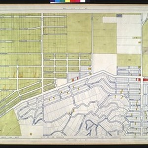 WPA Land use survey map for the City of Los Angeles, book 5 (Santa Monica Mountains from Girard to Van Nuys District), sheet 2. Includes: [Title page and] legend [for Book] no. V Composite index to Land use map books [for Book 5] Index to Book no. 5. Land use survey - City of Los Angeles. Department of City Planning. These maps were prepared with the assistance of the Works Progress Administration project no. 665-07-G-226 through 1939 to 1940. The land use data contained herein was compiled from a survey made with the assistance of the Civil Works Administration project no. 642, State Emergency Relief Administration project nos. 1-F2-318 and 1-F2-318A and Works Progress Administration project nos. 65-3-4377, 1101-2011 and 465-03-3-106. This survey functioned from Dec. 18, 1933 to May 8, 1939 and covers approximately 460 square miles within the boundary of the City of Los Angeles. It includes 347 colored drawings bound in 10 volumes of which this is no. V. The land use survey was supervised by the Zoning Engineer. The land use maps were supervised by the Illustrative Planning Engineer for the Sponsoring Department.