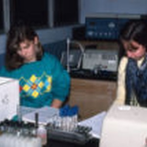 Two students sitting and reading in the laboratory.