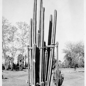 The label that accompanies this photo in the album reads "Pachycereus marginatus after transplanting, N. D-43."