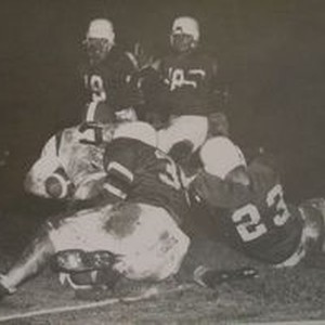 Photo--Black and white: Analy High School Tigers Football, 1953. An unidentified game photo. Photographer Clarence B. Maggetti, Jr. Press Democrat, Santa Rosa, CA