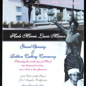 Grand opening and ribbon cutting ceremony program, Hale Morris Lewis Manor, Los Angeles, California, 2002 March 9. [Description English/roman)]