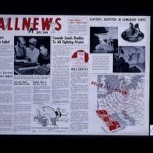 Wall News, Sept. 1944 ... Battle dress bears made in Canada label ... Canada sends radios to all fighting fronts ... [Verso:] Teaming up for the old squeeze play