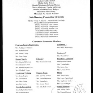 Women's Convention, Texas Northeast, Church of God in Christ (2008), planning documents including committee roster, action items, and programs for 2008 August 13-15. [Description English/roman)]