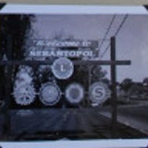Photo--black and white: Sebastopol Lions Club scrapbook photo: Civic organizations signs a Spooner Part in Sebastopol, 1960. Clubs represented: Lions Club International, Rotary International, 20-30 Club, Optimist International and Soroptimist International.