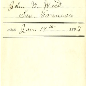 There are no known copyright restrictions associated with these digital images. We encourage the use of these images for personal, study, and educational purposes. Please credit “Courtesy of California State Archives.” The California State Archives and the Friends of California Archives cannot be responsible for any use of these images, or any liability resulting from their use. The Archives is interested in learning about any possible copyright restrictions and will gladly remove any image that is in violation.